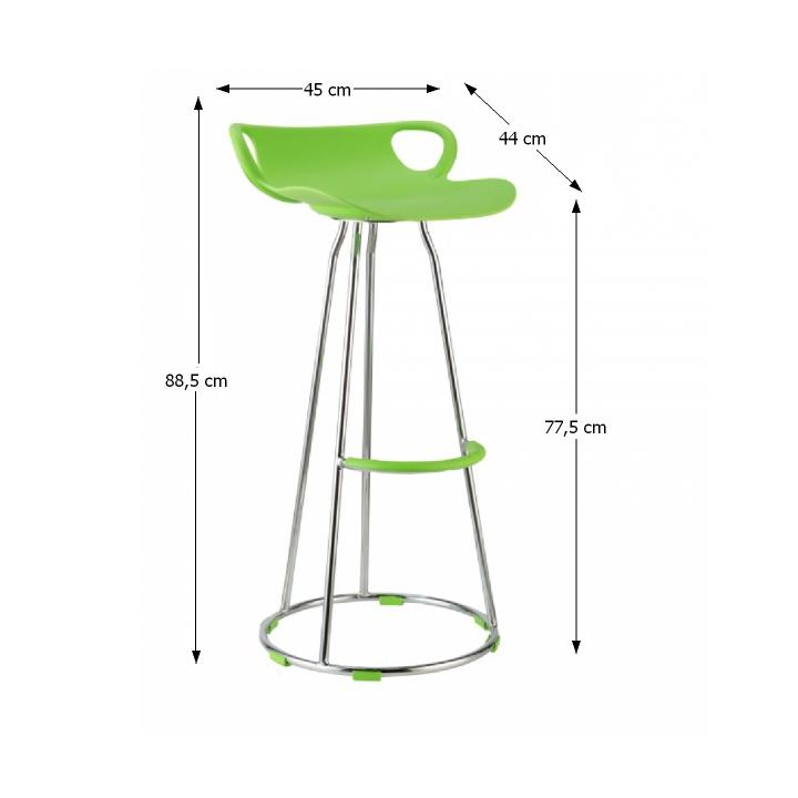 Barová stolička GLADI je štýlová stolička, ktorá sa výborne hodí do moderne zariadenej jedálne. Konštrukcia je vyrobená z chrómu a doplnená plastovým sedákom zelenej farby. Výška sedu je 77,5 cm. Nosnosť stoličky je 100 kg.