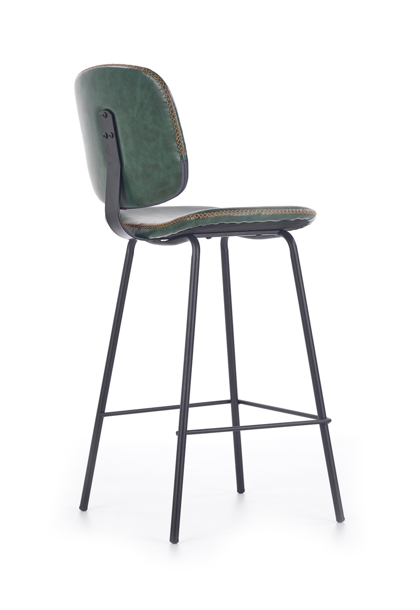 Barovú stoličku H-84 je vhodné umiestniť do jedálne, kuchyne, reštaurácie a iných interiérov. Konštrukcia je vyrobená z práškovanej ocele čiernej farby. Sedadlo a opierka sú čalúnené tmavozelenou ekokožou, ktorá je ľahká na údržbu. Ak vám nevyhovuje farba, je možné si vybrať aj z iných farebných prevedení. Rozmery stoličky sú (ŠxHxV): 44x50x101 cm. Výška sedenia je 69 cm a hĺbka sedenia je 39 cm. Nosnosť stoličky je 100 kg.