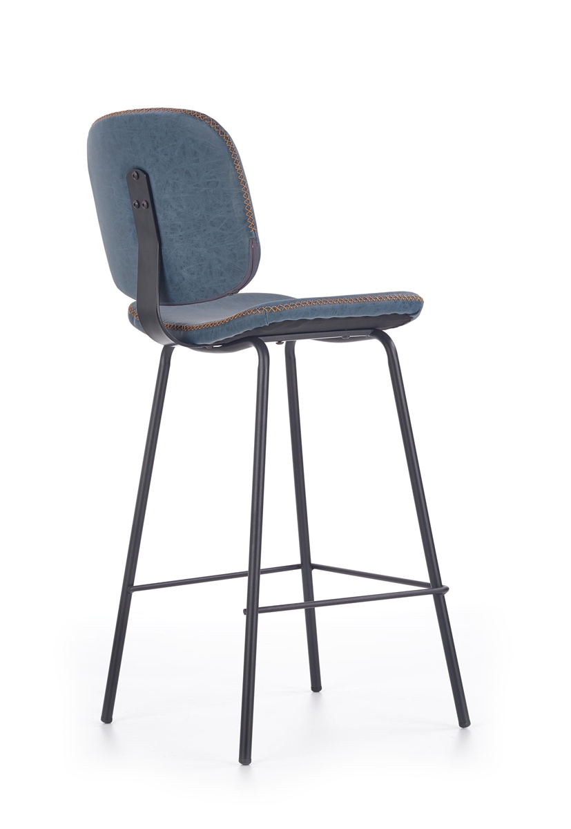 Barovú stoličku H-84 je vhodné umiestniť do jedálne, kuchyne, reštaurácie a iných interiérov. Konštrukcia je vyrobená z práškovanej ocele čiernej farby. Sedadlo a opierka sú čalúnené tmavomodrou ekokožou, ktorá je ľahká na údržbu. Ak vám nevyhovuje farba, je možné si vybrať aj z iných farebných prevedení. Rozmery stoličky sú (ŠxHxV): 44x50x101 cm. Výška sedenia je 69 cm a hĺbka sedenia je 39 cm. Nosnosť stoličky je 100 kg.