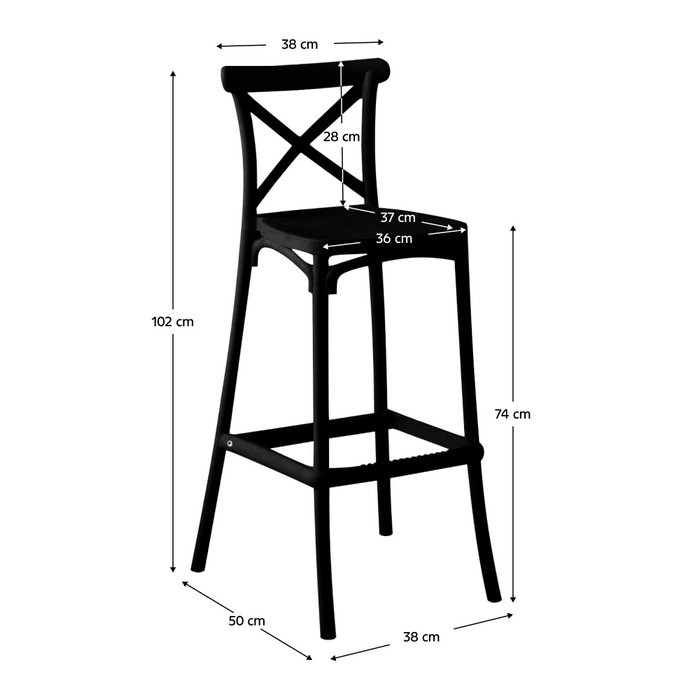 Barová stolička SAVITA TYP 2 spája štýl s funkčnosťou a stane sa elegantným doplnkom ku kuchynskému ostrovu alebo barovému pultu. Je vyrobená z odolného čierneho plastu, ktorý sa ľahko kombinuje s moderným aj klasickým zariadením. Pohodlné sedadlo so šírkou 36 cm, hĺbkou 37 cm a výškou 74 cm umožňuje komfortné sedenie aj počas dlhších chvíľ, zatiaľ čo operadlo s výškou 28 cm a šírkou 38 cm a praktická opierka na nohy poskytujú stabilnú oporu chrbta. Svoj priestor nájde nielen v jedálni, ale aj na terase, balkóne, záhrade či pri firemných akciách. S celkovými rozmermi (ŠxHxV): 38x50x102 cm a nosnosťou 80 kg je ideálnou voľbou pre interiér aj exteriér. Stolička sa dodáva v monte, pripravená na rýchle použitie.