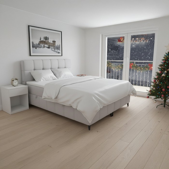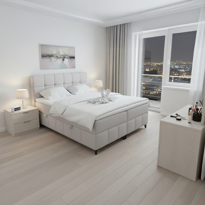 Boxspringová posteľ ALMA predstavuje spojenie výnimočného komfortu, modernej estetiky a praktického využitia. Tento typ postele patrí medzi najpohodlnejšie riešenia pre kvalitný spánok a vďaka svojmu nadčasovému dizajnu sa stáva dominantou každej spálne. Čalúnenie z odolnej látky Sereno v elegantnej svetlosivej farbe pôsobí jemne, neutrálne a ľahko sa kombinuje s rôznymi štýlmi interiéru. Vysoká oderuodolnosť textílie až 80 000 cyklov podľa testu Martindale zaručuje dlhú životnosť aj pri každodennom používaní. Stabilná konštrukcia je vyrobená z kombinácie smrekového a borovicového dreva, surovej dosky a MDF, čo zabezpečuje pevnosť, spoľahlivosť a dlhodobé držanie tvaru. Posteľ s rozmermi (ŠxHxV): 184x215x120 cm ponúka komfortnú plochu na spanie s rozmerom 180x200 cm. Výška spania 61 cm výrazne uľahčuje líhanie aj vstávanie a prispieva k celkovému pocitu pohodlia nielen počas noci, ale aj pri bežnom používaní. Dominantným prvkom postele je vysoké čelo s dekoratívnym prešívaním, ktoré pôsobí luxusne a zároveň slúži ako pohodlná opora pri čítaní či relaxe. Boxspringová konštrukcia vytvára pružný a zároveň pevný základ, ktorý poskytuje telu optimálnu podporu. Súčasťou postele je bonelový matrac s výplňou z molitanu T21 a so strednou tvrdosťou H3, vďaka čomu je zabezpečená správna poloha chrbtice a vyvážený pomer medzi mäkkosťou a stabilitou. Nosnosť jedného lôžka je až 160 kg. Pre ešte vyšší komfort je posteľ doplnená o vrchný topper z polyuretánovej peny s výškou 4 cm, ktorý dodáva spaniu extra mäkkosť. Topper má snímateľný poťah, ktorý je možné prať v práčke pri teplote 30°C, čo výrazne uľahčuje údržbu a zabezpečuje hygienu. Praktickou výhodou postele Alma je aj úložný priestor, ktorý sa sprístupní po vyklopení lôžka a ponúka dostatok miesta na uloženie posteľnej bielizne, sezónnych vecí alebo doplnkov. Stabilitu celej konštrukcie dopĺňajú štýlové kovové nožičky v čiernej farbe s výškou 10 cm, ktoré dodávajú posteli moderný charakter a uľahčujú upratovanie pod posteľou. Posteľ je dodávaná v demonte a spája v sebe funkčnosť, estetiku a vysoký štandard pohodlia. Nie je len miestom na spánok, ale plnohodnotným prvkom, ktorý pozdvihne úroveň celej vašej spálne.