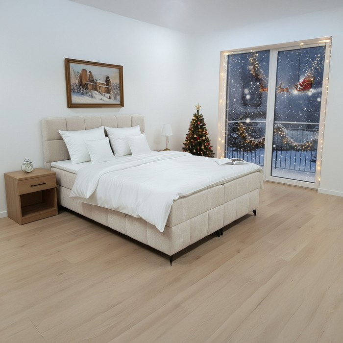 Boxspringová posteľ ALMA predstavuje spojenie výnimočného komfortu, modernej estetiky a praktického využitia. Tento typ postele patrí medzi najpohodlnejšie riešenia pre kvalitný spánok a vďaka svojmu nadčasovému dizajnu sa stáva dominantou každej spálne. Čalúnenie z odolnej látky Sereno v elegantnej béžovej farbe pôsobí jemne, neutrálne a ľahko sa kombinuje s rôznymi štýlmi interiéru. Vysoká oderuodolnosť textílie až 80 000 cyklov podľa testu Martindale zaručuje dlhú životnosť aj pri každodennom používaní. Stabilná konštrukcia je vyrobená z kombinácie smrekového a borovicového dreva, surovej dosky a MDF, čo zabezpečuje pevnosť, spoľahlivosť a dlhodobé držanie tvaru. Posteľ s rozmermi (ŠxHxV): 184x215x120 cm ponúka komfortnú plochu na spanie s rozmerom 180x200 cm. Výška spania 61 cm výrazne uľahčuje líhanie aj vstávanie a prispieva k celkovému pocitu pohodlia nielen počas noci, ale aj pri bežnom používaní. Dominantným prvkom postele je vysoké čelo s dekoratívnym prešívaním, ktoré pôsobí luxusne a zároveň slúži ako pohodlná opora pri čítaní či relaxe. Boxspringová konštrukcia vytvára pružný a zároveň pevný základ, ktorý poskytuje telu optimálnu podporu. Súčasťou postele je bonelový matrac s výplňou z molitanu T21 a so strednou tvrdosťou H3, vďaka čomu je zabezpečená správna poloha chrbtice a vyvážený pomer medzi mäkkosťou a stabilitou. Nosnosť jedného lôžka je až 160 kg. Pre ešte vyšší komfort je posteľ doplnená o vrchný topper z polyuretánovej peny s výškou 4 cm, ktorý dodáva spaniu extra mäkkosť. Topper má snímateľný poťah, ktorý je možné prať v práčke pri teplote 30°C, čo výrazne uľahčuje údržbu a zabezpečuje hygienu. Praktickou výhodou postele Alma je aj úložný priestor, ktorý sa sprístupní po vyklopení lôžka a ponúka dostatok miesta na uloženie posteľnej bielizne, sezónnych vecí alebo doplnkov. Stabilitu celej konštrukcie dopĺňajú štýlové kovové nožičky v čiernej farbe s výškou 10 cm, ktoré dodávajú posteli moderný charakter a uľahčujú upratovanie pod posteľou. Posteľ je dodávaná v demonte a spája v sebe funkčnosť, estetiku a vysoký štandard pohodlia. Nie je len miestom na spánok, ale plnohodnotným prvkom, ktorý pozdvihne úroveň celej vašej spálne.