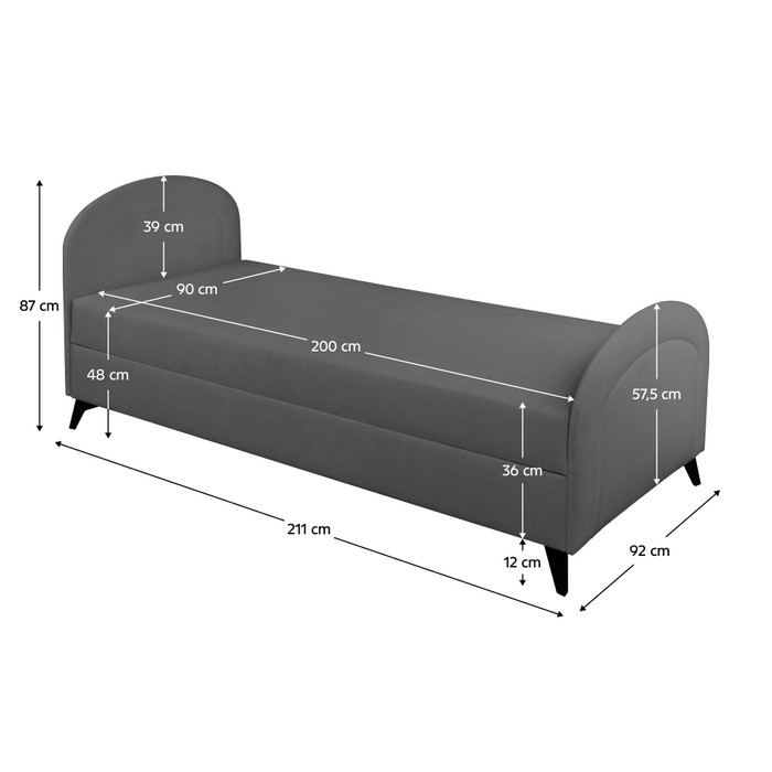 Jednolôžková posteľ PIGO ponúka praktické a pohodlné riešenie pre každodenné spanie v modernom interiéri. Vďaka nadčasovému dizajnu a funkčnému spracovaniu je vhodná do detských, študentských aj hosťovských izieb. Stabilná konštrukcia z dreva a HDF dosiek je celočalúnená kvalitnou látkou Mavel v sivom odtieni, ktorá sa vyznačuje vysokou oderuodolnosťou až 60 000 cyklov podľa testu Martindale. Tento materiál zabezpečuje dlhú životnosť a zachovanie estetického vzhľadu aj pri pravidelnom používaní. Komfort pri spánku zabezpečuje bonelový matrac so strednou tvrdosťou T3 v kombinácii s molitanom T25, ktorý poskytuje optimálnu oporu tela. Plocha na spanie má rozmery 90x200 cm a výška spania je 48 cm, čo prispieva k pohodlnému vstávaniu a každodennému používaniu. Celkové rozmery postele sú (ŠxHxV): 92x211x87 cm a nosnosť dosahuje 100 kg. Posteľ je vybavená praktickým výklopným mechanizmom, ktorý umožňuje jednoduchý prístup k priestrannému úložnému priestoru vhodnému na posteľnú bielizeň či sezónne veci. Praktické čelá na oboch stranách, vyplnené molitanom T18, zvyšujú komfort pri sedení a zároveň dotvárajú upravený vzhľad lôžka. Stabilitu zabezpečujú plastové nožičky v čiernej farbe s výškou 12 cm. Posteľ má univerzálne prevedenie, je dodávaná v demonte a vyrába sa na objednávku s dobou dodania približne 3 až 5 týždňov. Váľanda je ideálnou voľbou pre každého, kto hľadá funkčné jednolôžko s moderným vzhľadom, praktickým úložným priestorom a dlhou životnosťou.