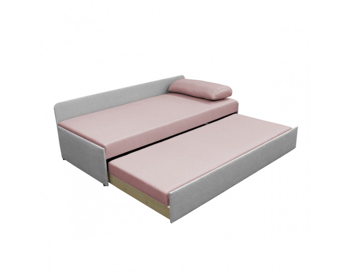 Čalúnená jednolôžková posteľ (váľanda) s prístelkou Jalen - ružová / svetlosivá