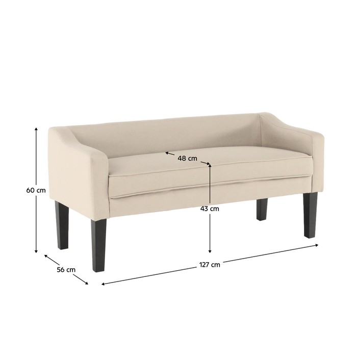 Dizajnová čalúnená lavica FIRONA je určená pre tých, ktorí radi oddychujú vo veľkom štýle. Nájde svoje uplatnenie v každom interiéri. Všade bude vyzerať lákavo a moderne. Jej rozmery sú (ŠxHxV): 127x56x60 cm, výška sedu je 43 cm a hĺbka sedu 48 cm. Nechajte sa očariť nádhernou kombináciou béžovej látky a čiernych drevených nožičiek. Komfort má na starosti vysokokvalitná penová výplň. Lavica je dodávaná v demonte. Bola stvorená, aby robila radosť.