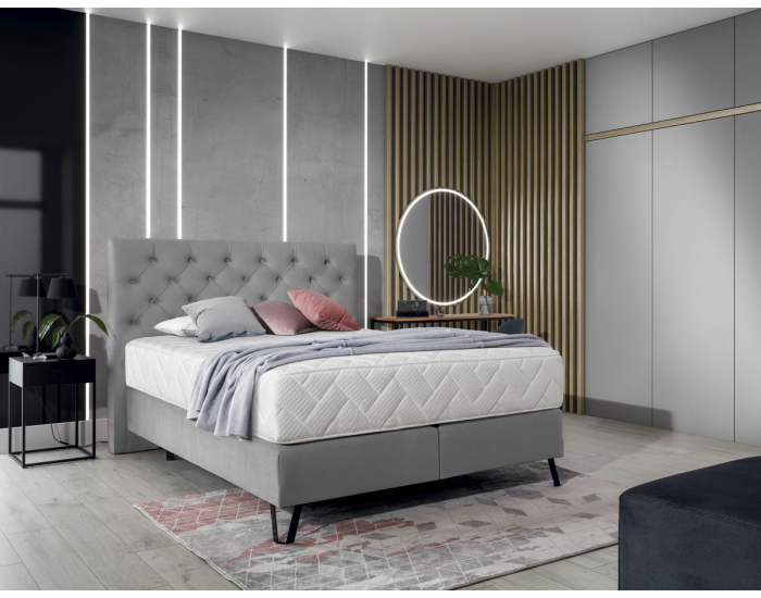 Pre naštartovanie sa do nového dňa a pre jeho úspešné zvládnutie je hlavnou podmienkou dobre sa vyspať a dokonale si oddýchnuť vo svojej pohodlnej, mäkkej a dizajnovo nádhernej posteli. Jednou z nich je aj čalúnená manželská posteľ CANARA 180. Krásne vysoké čelo doplnené prešívaním, detailné čierne kovové vysoké nohy a nádherné farebné prevedenie svetlosivá ju robia neuveriteľne originálnou. Na čalúnenie postele bola použitá prijemná látka Nube. Látka Nube je vysokokvalitná, odolná, príjemná na dotyk s hmotnosťou 325 g/m2 a odolnosťou voči oderu podľa Martindale testov viac ako 100000 cyklov. Je tiež odolná proti žmolkovaniu, je vodeodolná, lesklá a elegantná. Celkové rozmery tejto postele boxpringového štýlu sú (ŠxHxV): 198x215x130 cm, výška sedu je 69 cm, spacia plocha má šírku 180 cm a nožičky sú vysoké 15 cm, vďaka ktorým je zabezpečená vzdušnosť postele. Dodáva sa bez matraca, ktorý je možné zakúpiť z našej ponuky. Canara zabezpečí tie najlepšie podmienky pre kvalitný, ničím nerušený spánok.