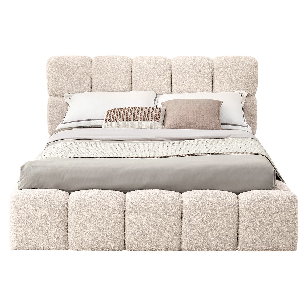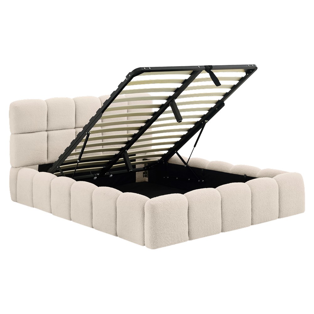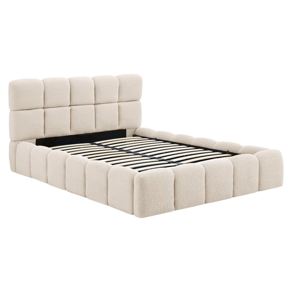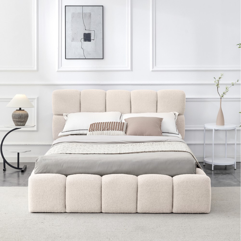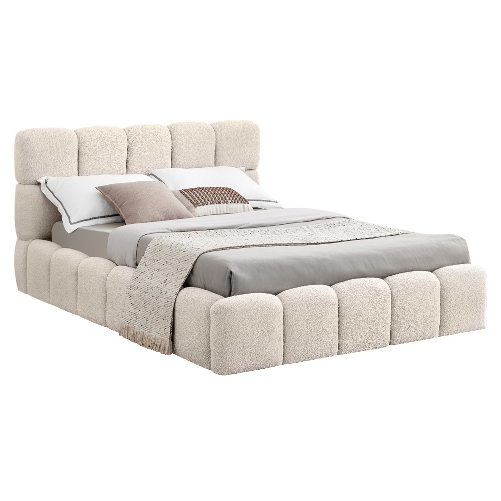 Posteľ SORELA je štýlovým kúskom, ktorý v sebe spája moderný dizajn, pohodlie a elegantný vzhľad. Už na prvý pohľad upúta mäkko čalúneným čelom s jemným prešívaním, ktoré pôsobí luxusne a zároveň vytvára príjemnú atmosféru na každodenný oddych. Vďaka nadčasovému vzhľadu sa prirodzene hodí do moderných aj klasických interiérov a dodá spálni pocit útulnosti a štýlu. Čalúnenie je vyhotovené z látky Bouclé v béžovej farbe, ktorá je známa svojím príjemným povrchom a jemnou štruktúrou, pričom konštrukcia postele je vyrobená z drevotriesky doplnenej penou. Textília dosahuje oderuodolnosť 40 000 cyklov podľa testu Martindale, čo zaručuje jej dlhú životnosť. Rozmery postele sú (ŠxHxV): 168x230x98 cm a plocha na spanie má veľkosť 140x200 cm. Výška po rošt je 24 cm, výška bočnice 34 cm a jej šírka je 11,5 cm. Čelo postele má výšku 98 cm, pričom od bočnice meria 64 cm, jeho hrúbka je 17 cm a pri nohách 11,5 cm. Nosnosť lôžka je 100 kg. Posteľ je vybavená praktickým úložným priestorom, ktorý sa nachádza v spodnej časti a otvára sa pomocou výklopného roštu s kovovým rámom a plynovými piestami, vďaka čomu je manipulácia jednoduchá a pohodlná. Rošt obsahuje lamely z topoľovej preglejky. Posteľ sa dodáva bez matraca, pričom je možné vybrať si vhodný matrac z ponuky, ideálne s rozmerom 140x200 cm a odporúčanou výškou približne 20 cm. Zapustenie matraca je 7 cm. Posteľ stojí na kovových nožičkách v čiernej farbe s rozmermi (ŠxHxV): 4x4x2,4 cm. Vyznačuje sa elegantným dizajnom s vysokým prešívaným čelom a je dodávaná v demonte, čo umožňuje jednoduchšiu prepravu a montáž.