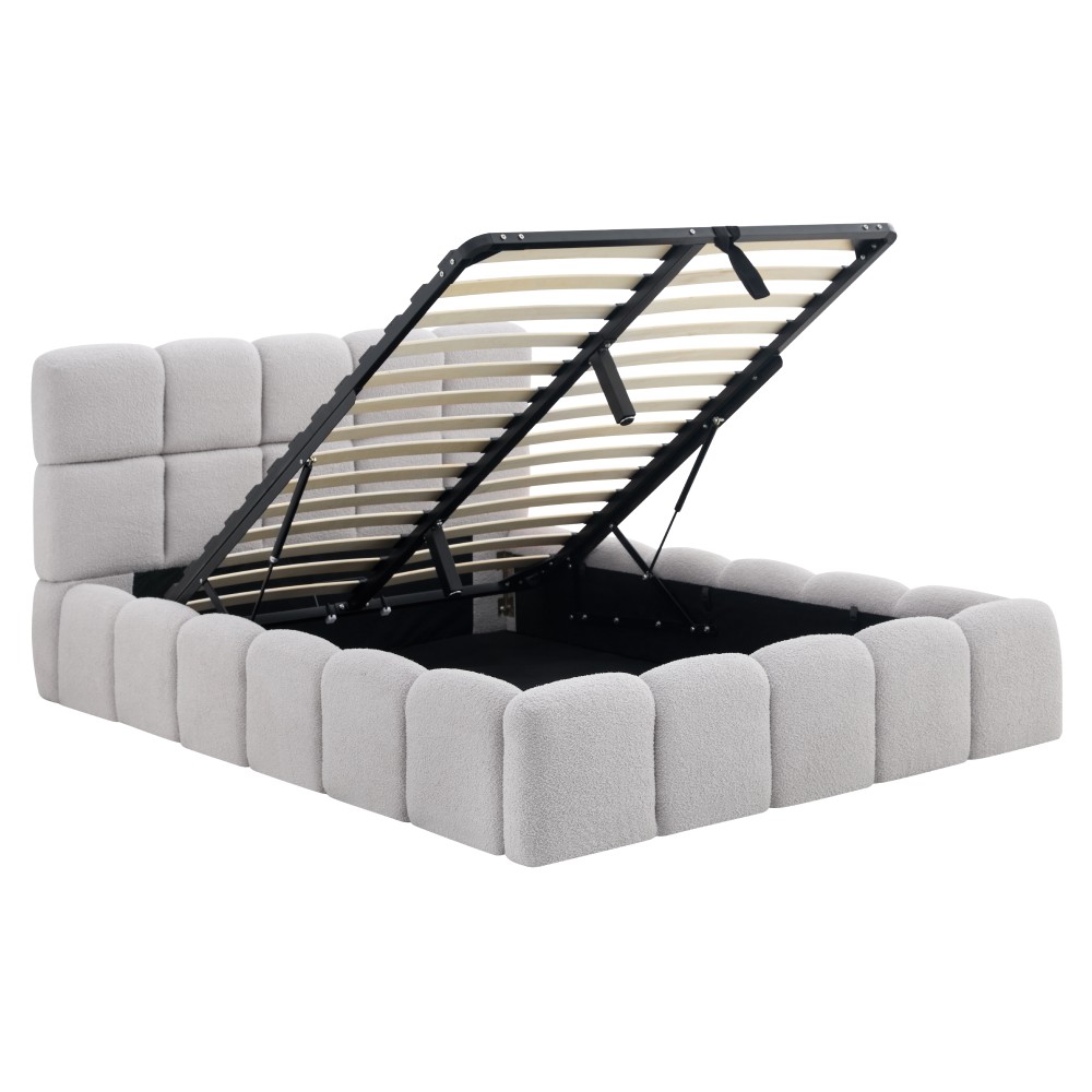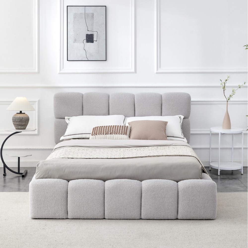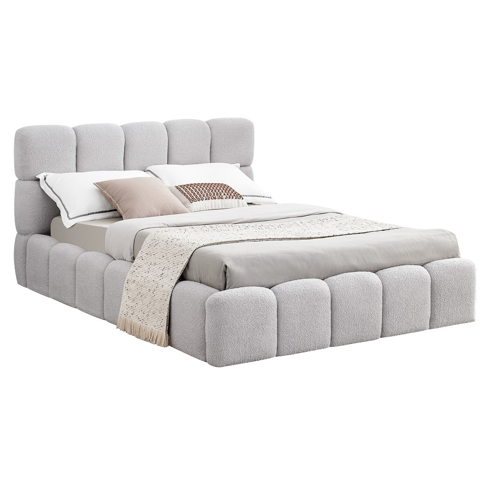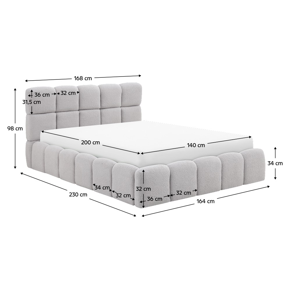 Posteľ SORELA je štýlovým kúskom, ktorý v sebe spája moderný dizajn, pohodlie a elegantný vzhľad. Už na prvý pohľad upúta mäkko čalúneným čelom s jemným prešívaním, ktoré pôsobí luxusne a zároveň vytvára príjemnú atmosféru na každodenný oddych. Vďaka nadčasovému vzhľadu sa prirodzene hodí do moderných aj klasických interiérov a dodá spálni pocit útulnosti a štýlu. Čalúnenie je vyhotovené z látky Bouclé v sivej farbe, ktorá je známa svojím príjemným povrchom a jemnou štruktúrou, pričom konštrukcia postele je vyrobená z drevotriesky doplnenej penou. Textília dosahuje oderuodolnosť 40 000 cyklov podľa testu Martindale, čo zaručuje jej dlhú životnosť. Rozmery postele sú (ŠxHxV): 168x230x98 cm a plocha na spanie má veľkosť 140x200 cm. Výška po rošt je 24 cm, výška bočnice 34 cm a jej šírka je 11,5 cm. Čelo postele má výšku 98 cm, pričom od bočnice meria 64 cm, jeho hrúbka je 17 cm a pri nohách 11,5 cm. Nosnosť lôžka je 100 kg. Posteľ je vybavená praktickým úložným priestorom, ktorý sa nachádza v spodnej časti a otvára sa pomocou výklopného roštu s kovovým rámom a plynovými piestami, vďaka čomu je manipulácia jednoduchá a pohodlná. Rošt obsahuje lamely z topoľovej preglejky. Posteľ sa dodáva bez matraca, pričom je možné vybrať si vhodný matrac z ponuky, ideálne s rozmerom 140x200 cm a odporúčanou výškou približne 20 cm. Zapustenie matraca je 7 cm. Posteľ stojí na kovových nožičkách v čiernej farbe s rozmermi (ŠxHxV): 4x4x2,4 cm. Vyznačuje sa elegantným dizajnom s vysokým prešívaným čelom a je dodávaná v demonte, čo umožňuje jednoduchšiu prepravu a montáž.