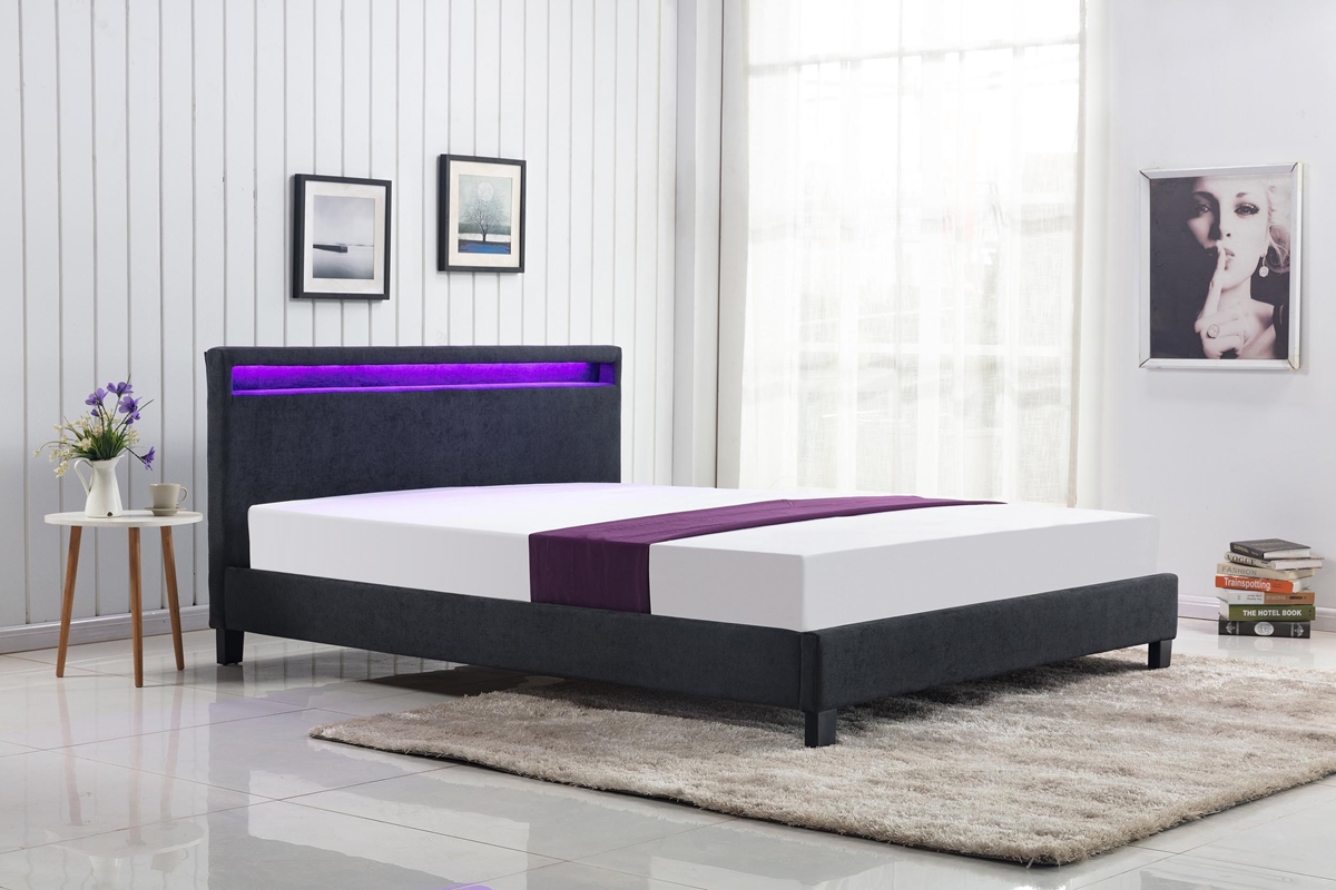 Čalúnená manželská posteľ s roštom a osvetlením Arda 160 - čierna / tmavosivá