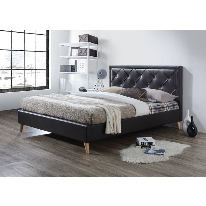Čalúnená manželská posteľ s roštom Puffie 180 - tmavohnedá