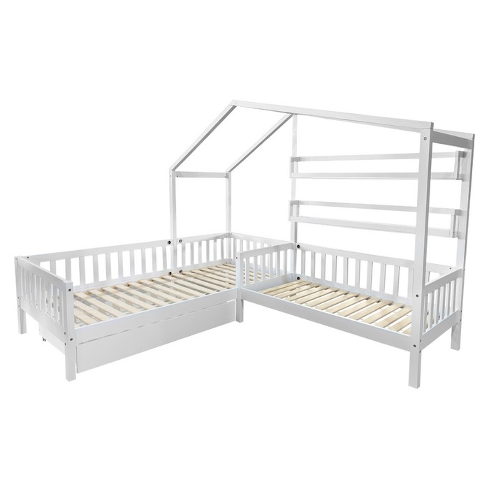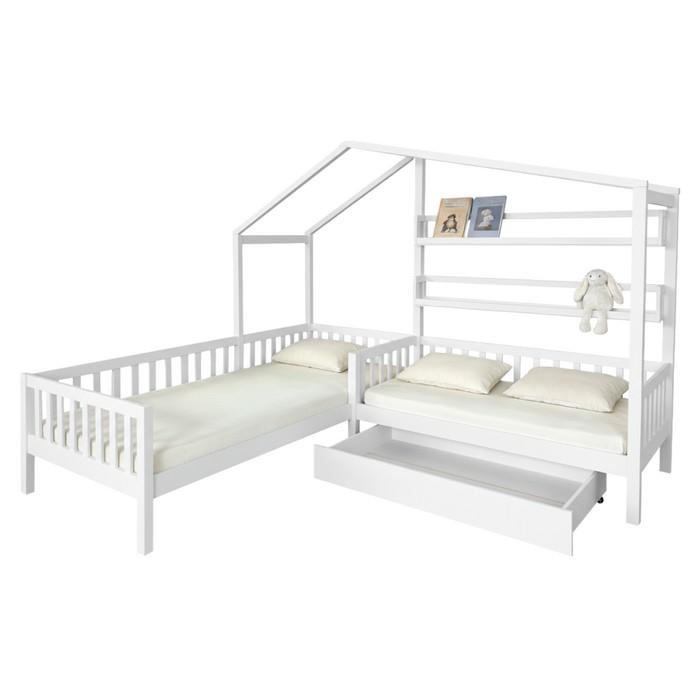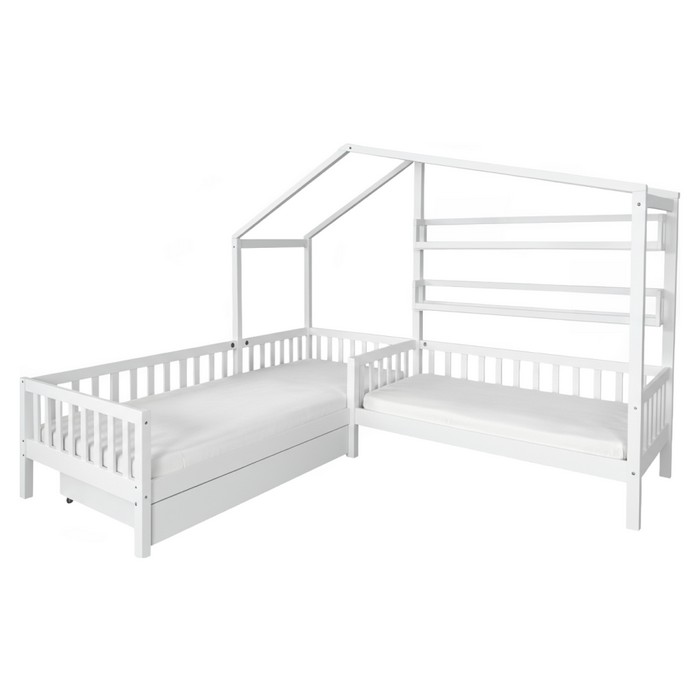 Montessori prístup vo výchove kladie dôraz na samostatnosť, prirodzený rozvoj a rešpektovanie potrieb dieťaťa. Dôležitou súčasťou tohto prístupu je aj prostredie, v ktorom dieťa vyrastá. Deti by mali mať priestor prispôsobený ich výške, možnostiam a zvedavosti, aby mohli bezpečne objavovať svet okolo seba a rozvíjať svoju nezávislosť. Práve preto sa v detských izbách čoraz častejšie objavuje nábytok inšpirovaný Montessori princípmi, ktorý podporuje pohodlie, bezpečnosť aj hravosť. Rohová detská posteľ ENOLA je snom každého malého objaviteľa a zároveň praktickým riešením pre rodičov, ktorí chcú vytvoriť krásnu, funkčnú a bezpečnú detskú izbu. Moderný dizajn v tvare domčeka a v tvare písmena L premení obyčajné spanie na čarovný priestor vhodný na oddych, čítanie rozprávok aj detské hry. Konštrukcia postele je vyrobená z masívneho borovicového dreva v kombinácii s lakovanou MDF, čo zabezpečuje pevnosť, stabilitu a dlhú životnosť pri každodennom používaní. Praktická zásuvka pod posteľou poskytuje ideálny úložný priestor na posteľnú bielizeň, hračky alebo sezónne veci. Súčasťou sú aj otvorené police, ktoré ponúkajú miesto na knihy, dekorácie alebo obľúbené detské poklady. Je vyhotovená v bielej farbe, ktorá pôsobí čisto a ľahko sa kombinuje s rôznymi štýlmi detských izieb. Súčasťou balenia je rolovaný rošt z preglejky, ktorý zabezpečuje spoľahlivú oporu pre matrac. Posteľ sa dodáva bez matraca, pričom odporúčame dokúpiť matrac s rozmerom 90x200 cm a 70x140 cm z našej ponuky. Detská posteľ premení detskú izbu na miesto plné fantázie, kde sa spájajú pohodlie, bezpečie a hravý dizajn.