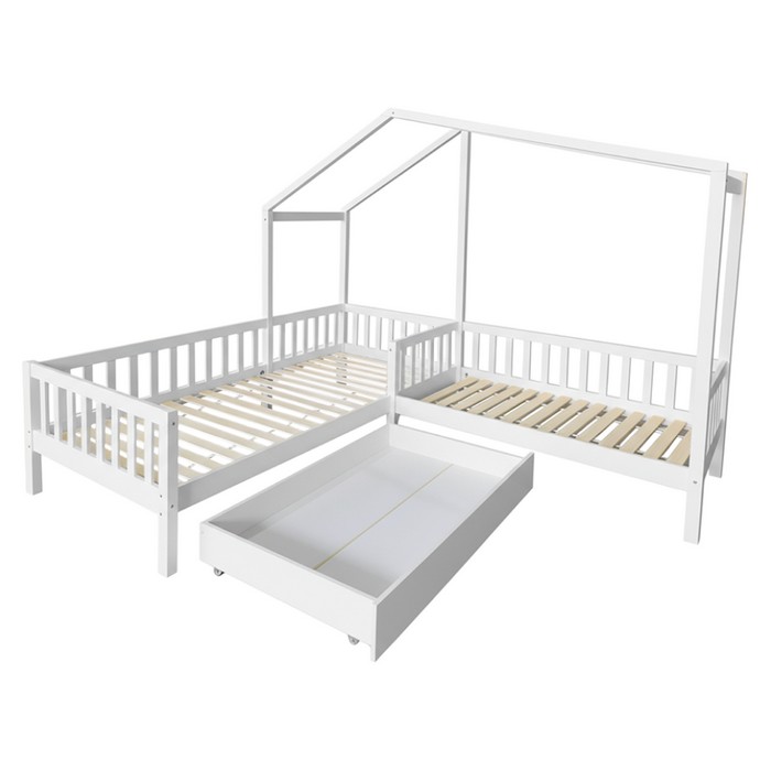 Detská posteľ s roštom pre 2 deti Enola 90x200+70x140 - biela