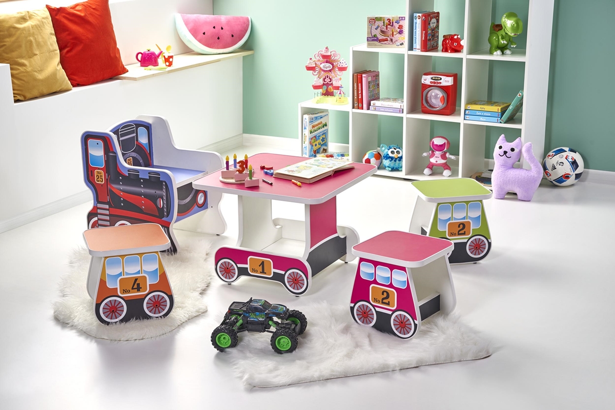 Detská taburetka LOKOMO predstavuje doplnok vhodný do každej detskej izby. Konštrukcia je vyrobená z laminovanej drevotriesky a mäkké hrany z kvalitnej PVC. Taburetka sa dodáva v zelenom farebnom prevedení, pričom na výber je aj v iných farebných vyhotoveniach. Jednotlivé prvky Locomo zaujmú najmä svojim originálnym dizajnom s motívom vláčika. Tento jedinečný nábytok bude neoddeliteľnou súčasťou každého sprievodcu. Vďaka svojim rozmerom sa hodí do menších priestorov. Ku krásnej taburetke Lokomo môžno zakúpiť aj kreslo a stolík. Maximálna nosnosť je 40 kg.