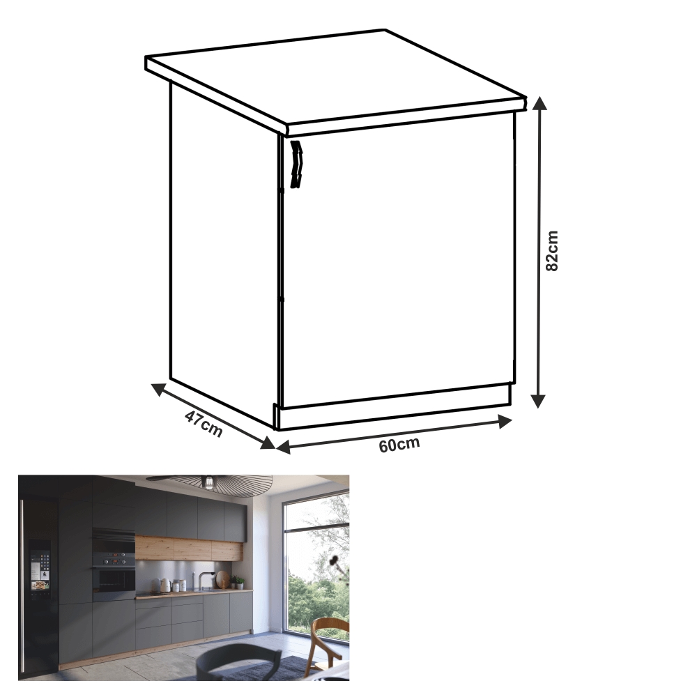 Dolná kuchynská skrinka Langen D60 P - dub artisan / sivá