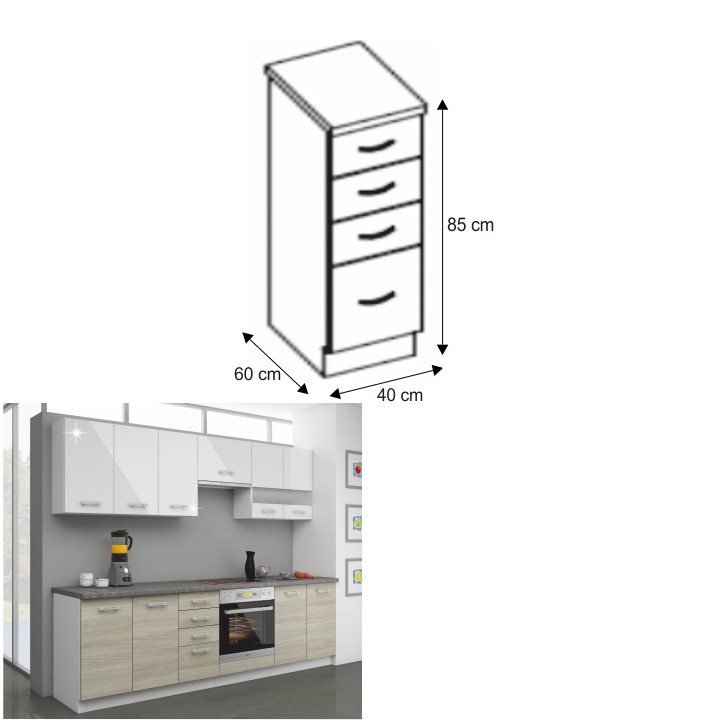 Dolná kuchynská skrinka Lewis 40 D 4S ZB - dub late