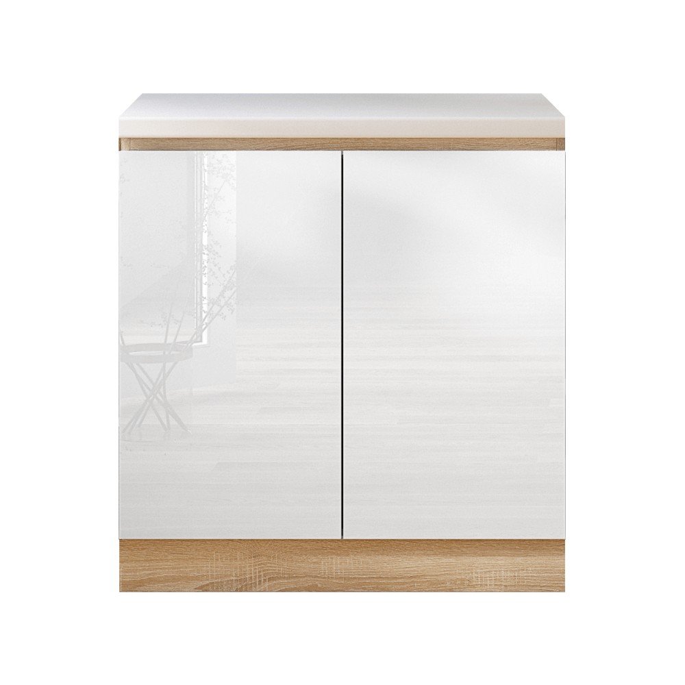 Dolná kuchynská skrinka Line White D80 - biely vysoký lesk / dub sonoma