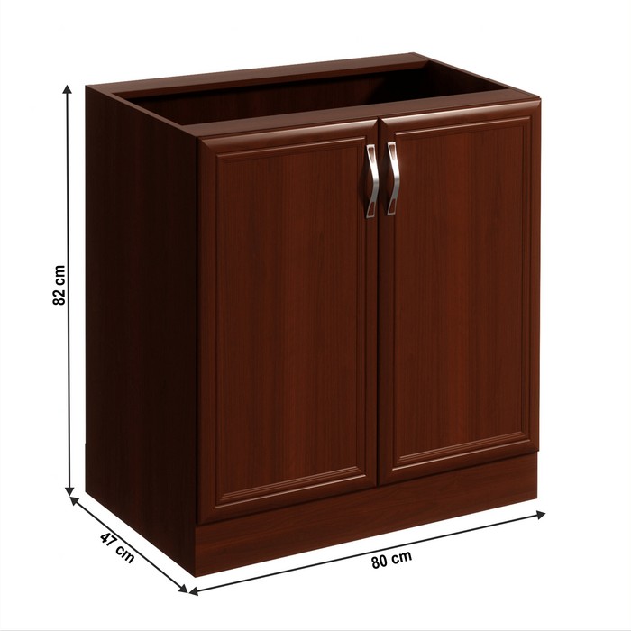 Rustikálna dolná kuchynská skrinka SICILIA D80 je dvojdverová skrinka, ktorá sa otvára pomocou plastovej úchytky. Vnútorný priestor je policou rozdelený na 2 odkladacie plochy. Systém Sicilia je sektorová kuchynská zostava vyrobená v rustikálnom štýle, ktorá vyniká moderným a kvalitným spracovaním. Jedinečnú krásu dotvárajú detaily na čelných plochách a ornamenty na okrasných lištách. Kuchyňa spĺňa požiadavky aj tých najnáročnejších klientov. Trendové prevedenie vnesie teplo do vašej kuchyne. Korpus a dvierka sú vyrobené z laminovanej DTD v prevedení orech Milano. Ozdobné lišty sú z kvalitnej MDF a podčiarkujú rustikálny nádych kuchynskej linky. Dvierka a zásuvky sa otvárajú pomocou plastových úchytiek. Dolné kuchynské skrinky sa dodávajú bez pracovnej dosky, ktorú je možné doobjednať vo farebnom prevedení royl beigemarble a s hrúbkou 2,8 cm. Z jednotlivých prvkov zostavy si môžete vyskladať kuchynskú linku podľa vašich potrieb a predstáv. Ak vám nevyhovuje farba, je možné si vybrať komponenty aj v svetlom prevedení biela / sosna Andersen.