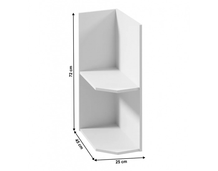 Dolná rohová kuchynská skrinka ROYAL D25PZ L je policová skrinka, ktorú možno kombinovať s ostatnými prvkami z modelovej rady Royal. Rozmery skrinky sú (ŠxHxV): 25x45x72 cm. Systém Royal je elegantná sektorová kuchynská zostava vyrobená v anglickom štýle, ktorú si môžete vyskladať podľa Vašich potrieb a predstáv. Materiál použitý na výrobu je laminovaná DTD vo farebnom prevedení biela.