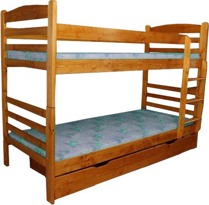 Drevená poschodová posteľ s roštami a matracmi Paulina - borovica