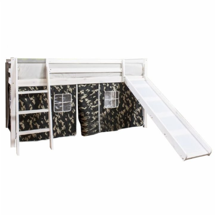 Drevená poschodová posteľ s roštom Verdi 90 - biela / vzor army