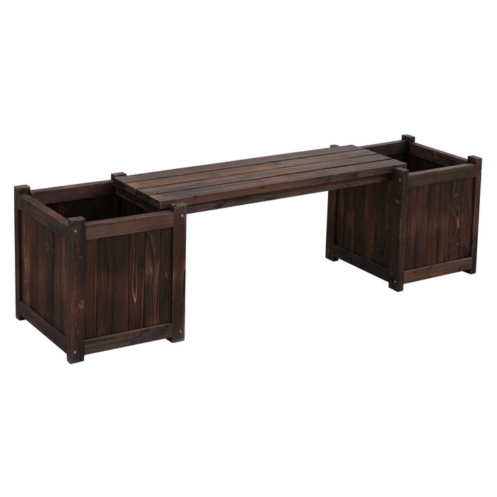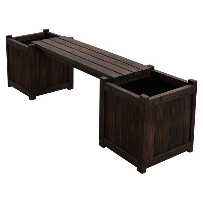 Drevená záhradná lavička s kvetináčmi Sasil - hnedá