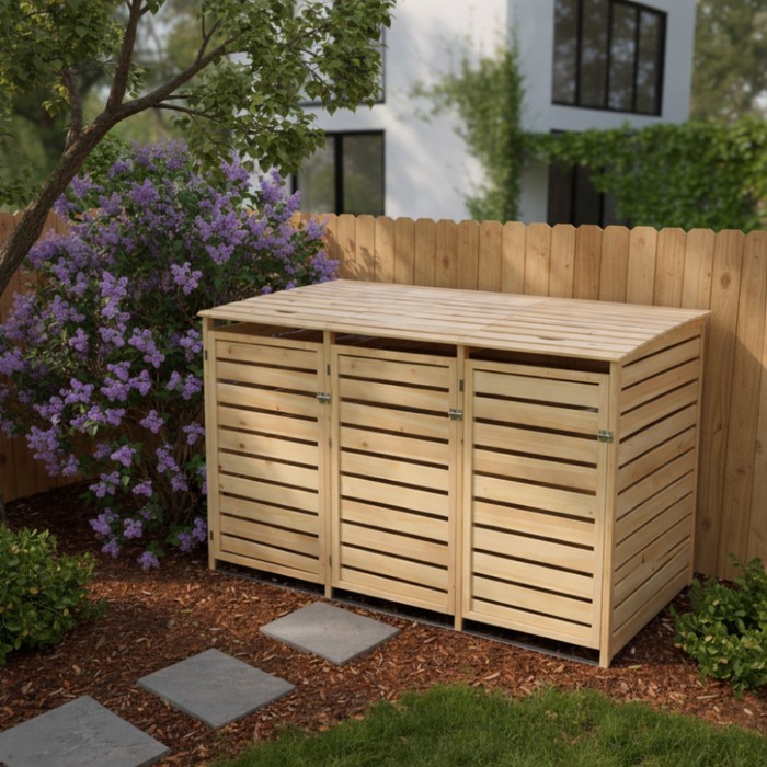 Drevený box na tri odpadkové koše Brudo Typ 2 - prírodná