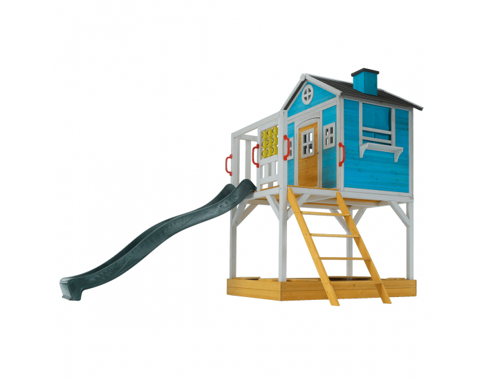 Drevený záhradný domček pre deti Portio - prírodná / biela / modrá / červená / sivá