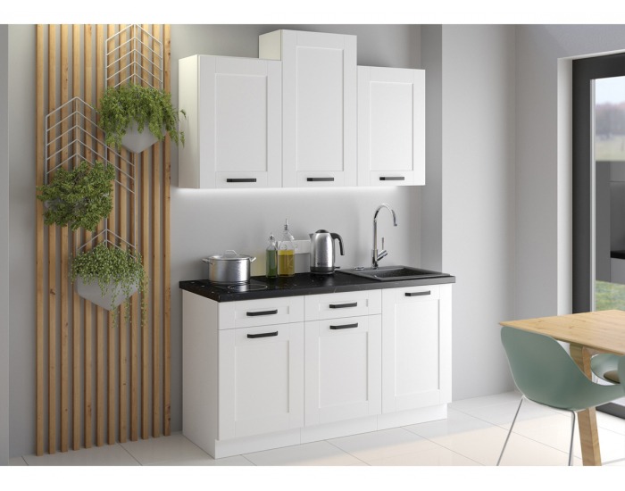 Skrinka je vyrobená z kvalitného aglomerovaného materiálu, konkrétne z laminovanej DTD/MDF, čo zaručuje jej dlhú životnosť a odolnosť voči bežnému opotrebeniu. Jej svetlá biela farba dodáva miestnosti svieži a čistý vzhľad, ktorý sa ľahko kombinuje s inými farebnými prvkami v kuchyni.