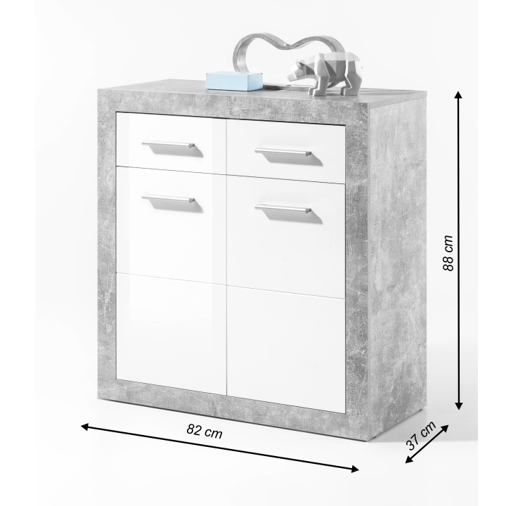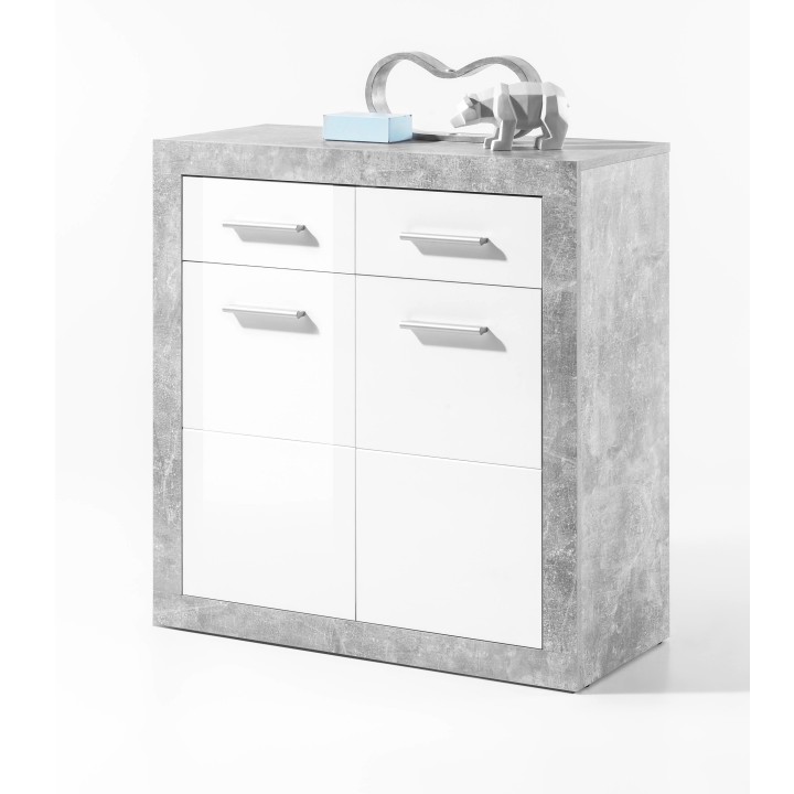 Dvojdverová komoda Slone 1 - biely lesk / sivý betón