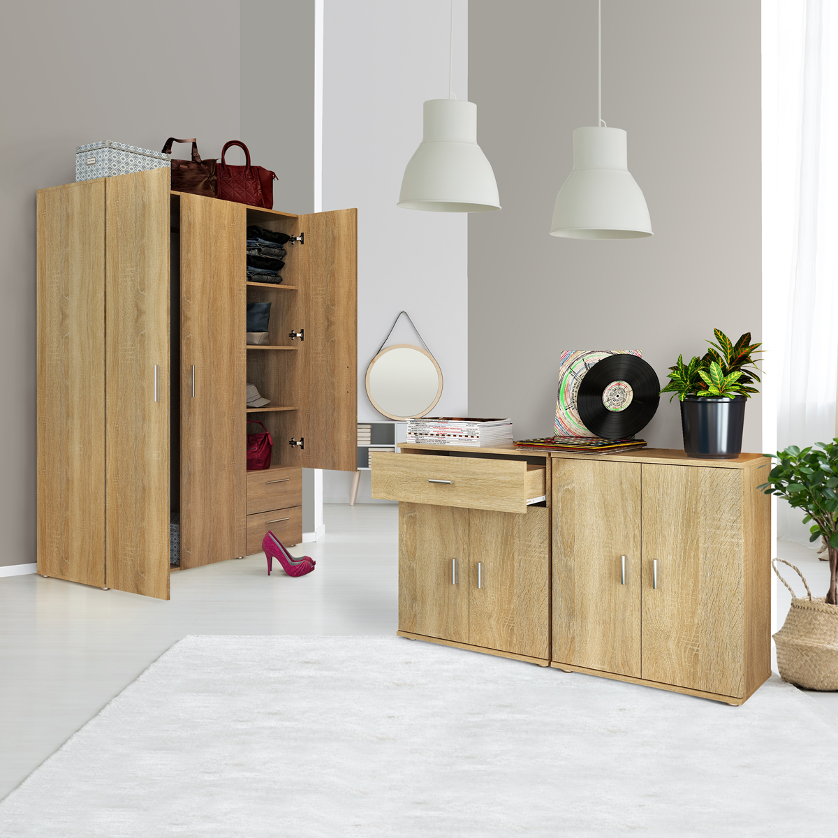 - Farebné prevedenie: Svetlá farba dub sonoma dodáva komode moderný vzhľad, ktorý sa ľahko kombinuje s iným nábytkom.