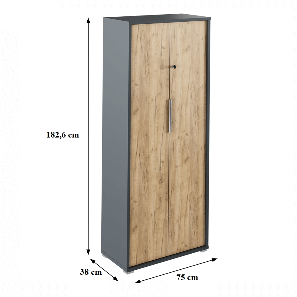 Dvojdverová šatníková skriňa so zámkom Rioma Typ 31 - grafit / dub artisan