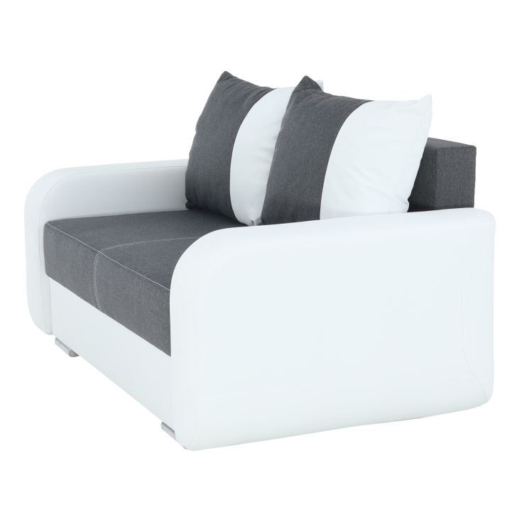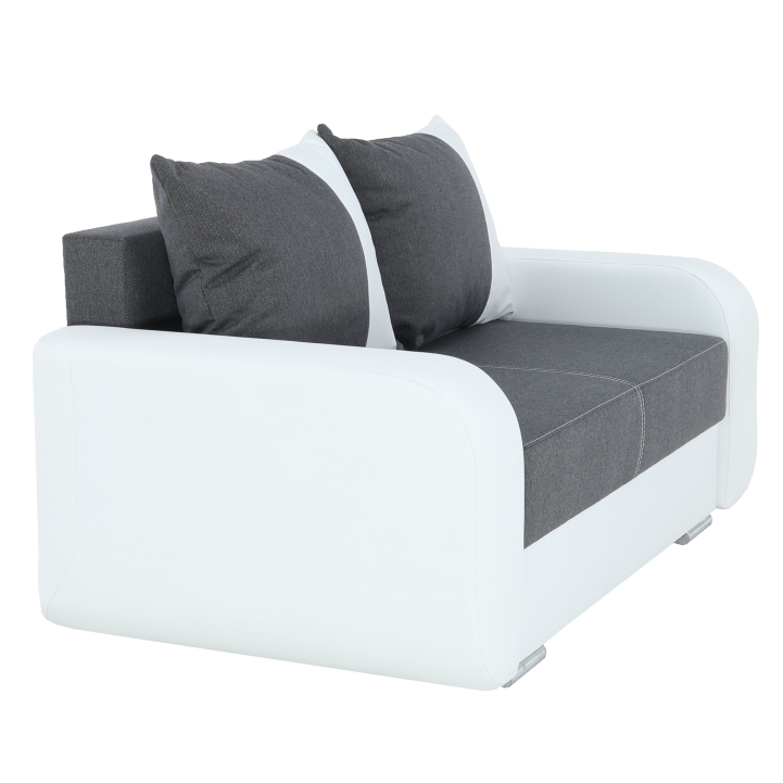 Dvojsedačka MONO je moderná a trendová pohovka, ktorú možno kombinovať s ostatnými prvkami z modelovej rady Mono. Pohodlné sedenie poskytujú kvalitné pružiny Bonell. Korpus je čalúnený bielou ekokožou a sedenie čiernou látkou šenil (Boss 12). V cene pohovky sú tiež 2 veľké oporné vankúše vyrobené v kombinácii bielej ekokože a čiernej látky. Pohovka nedisponuje rozkladom na lôžko a úložným priestorom. Výška sedu je 43 cm a hĺbka sedu je 52 cm.