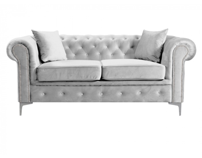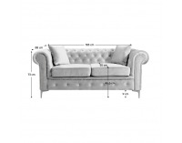 Vneste do svojho interiéru nádych luxusu s 2-sedom ROMANO v štýle Chesterfield, ktorý zaujme noblesou a eleganciou. Čalúnenie zo svetlosivej látky Velvet 03 s oderuodolnosťou 50 000 cyklov Martindale pôsobí jemne a sofistikovane. Celočalúnené prevedenie umožňuje umiestnenie kdekoľvek v priestore, kde sa stane neprehliadnuteľným prvkom. S rozmermi (ŠxHxV): 185x88x73 cm poskytuje pohodlné sedenie s výškou sedu 46,6 cm, hĺbkou sedu 55 cm a nosnosťou 120 kg na osobu. Stabilitu zaisťujú kovové nožičky v striebornej farbe s výškou spodného priestoru 9 cm. Sedacia časť je vybavená výplňou z pružiny Falista s tvrdosťou T30 a uchytená suchým zipsom pre jednoduchú manipuláciu. Bohaté prešívanie, zakrivené opierky rúk a strieborné dekoratívne gombíky podčiarkujú štýlový dizajn. Súčasťou balenia sú dva dekoratívne vankúše, ktoré dopĺňajú luxusný vzhľad. Dodáva sa v demonte, pripravený na jednoduchú montáž.