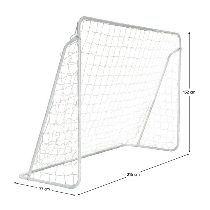 Vytvorte si vlastné futbalové ihrisko priamo doma s bránkou DEA. Jej pevná kovová konštrukcia a biela PE sieť zabezpečujú spoľahlivé zachytenie každej strely, takže si môžete naplno užiť radosť z hry a každý gól. Bránka je dodávaná so 4 kolíkmi, ktoré umožňujú stabilné uchytenie na rôznom podklade. Rozmery bránky sú (ŠxHxV): 216x77x152 cm a priemer rúrky 2,5 cm zaručuje pevnosť a stabilitu. Sieť s rozmerom oka 10x10 cm je odolná voči poveternostným vplyvom, a montáž je jednoduchá - bránka je dodávaná v demonte spolu so sieťou. Je ideálna na záhradu či park a poskytuje priestrannú hraciu plochu pre tréning futbalových zručností a zábavu pre všetkých.