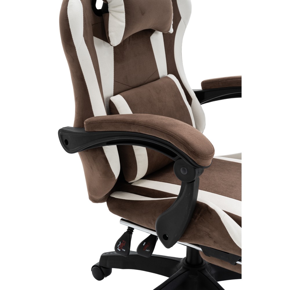 Kancelárske a herné kreslo HOSPO je ideálnou voľbou pre každého, kto hľadá spojenie pohodlia, štýlu a funkčnosti v jednom. Vďaka svojmu ergonomickému tvaru inšpirovanému hernými modelmi poskytuje spoľahlivú oporu pri dlhom sedení počas práce aj oddychu. Kreslo je vyrobené z kvalitnej látky a plastu s oderuodolnosťou textílie 15 000 cyklov Martindale, čo zaručuje dlhú životnosť. Kombinácia hnedej, bielej a čiernej farby pôsobí moderne, no zároveň hrejivo a elegantne, vďaka čomu sa hodí do kancelárie, domácej pracovne aj herného priestoru. Komfort zabezpečuje nastaviteľná opierka hlavy, polohovateľná opierka chrbta so sklonom 90-122°, ako aj odnímateľná hlavová a bedrová opierka. Pre maximálne uvoľnenie slúži výsuvná podnož, zatiaľ čo čalúnené opierky na ruky poskytujú pohodlnú oporu. Sedacia časť má rozmery (ŠxH): 36x38 cm, pričom výška sedu je nastaviteľná v rozmedzí 44-54 cm. Chrbtová opierka s výškou 78 cm a šírkou 54 cm sa postará o zdravé držanie tela. Celkové rozmery kresla sú (ŠxHxV): 63x62x113-123 cm. Kreslo je vybavené hojdacím mechanizmom, je plne otočné, má univerzálne kolieska vhodné na tvrdé aj mäkké podlahy a spočíva na stabilnej plastovej päťramennej podstave. Vďaka nosnosti až 130 kg a hmotnosti 14 kg je praktické a odolné. Dodáva sa v demonte.