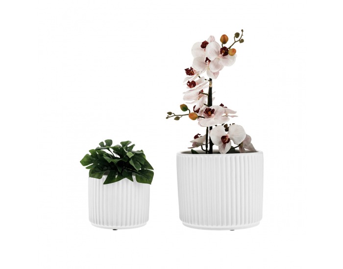 Kvetináče sú vyrobené z kvalitnej hliny, ktorá zabezpečuje ich odolnosť a dlhú životnosť. Vďaka svojmu okrúhlemu tvaru a svetlej farebnosti sa ľahko prispôsobia akémukoľvek interiéru a dodajú mu nádych elegancie. S dvoma rôznymi rozmermi – výška 13 cm so šírkou a hĺbkou 15,5 cm a výška 19 cm so šírkou a hĺbkou 21,5 cm – ponúkajú flexibilitu pri umiestnení rôznych druhov rastlín.