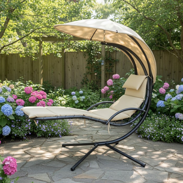 Hojdacie kreslo so strieškou Spavin 2 New - béžová / čierna