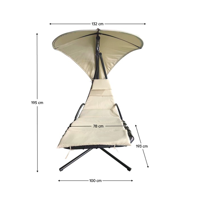 Záhradné hojdacie kreslo SPAVIN 2 NEW prinesie do vášho exteriéru dokonalú kombináciu pohodlia, relaxu a moderného dizajnu. Vďaka pevnej oceľovej konštrukcii je stabilné a bezpečné pri používaní, zatiaľ čo kvalitný polyester zabezpečuje príjemné sedenie a zároveň odolnosť voči vonkajším podmienkam. O maximálny komfort sa postarajú mäkké, vodoodolné vankúše, ktoré sa prispôsobia telu a spríjemnia chvíle oddychu - či už pri rannej káve, alebo večernom relaxe pod holým nebom. Praktické tienidlo chráni pred priamym slnečným žiarením, takže si pohodlie môžete vychutnať aj počas horúcich letných dní. Elegantná kombinácia béžovej a čiernej farby pôsobí nadčasovo a ľahko zapadne do rôznych štýlov záhrad či terás. Kreslo tak vytvára ideálne miesto na oddych a príjemné chvíle pohody. Konštrukcia je vyrobená z ocele a doplnená polyesterovou tkaninou s vysokou odolnosťou voči oderu (95 000 cyklov podľa testu Martindale). Celkové rozmery kresla sú (ŠxHxV): 100x193x195 cm, šírka sedu je 78 cm a šírka tienidla dosahuje 132 cm. Maximálna nosnosť je 150 kg. Kreslo sa dodáva s vankúšmi s hrúbkou 3 cm, ktoré majú vodoodolné poťahy. Pri používaní v exteriéri sa odporúča chrániť ho ochranným krytom alebo plachtou. Údržba je jednoduchá - stačí ho čistiť vlhkou handričkou, pričom sa neodporúča bielenie, sušenie v sušičke, žehlenie ani chemické čistenie. Produkt je dodávaný v demonte.