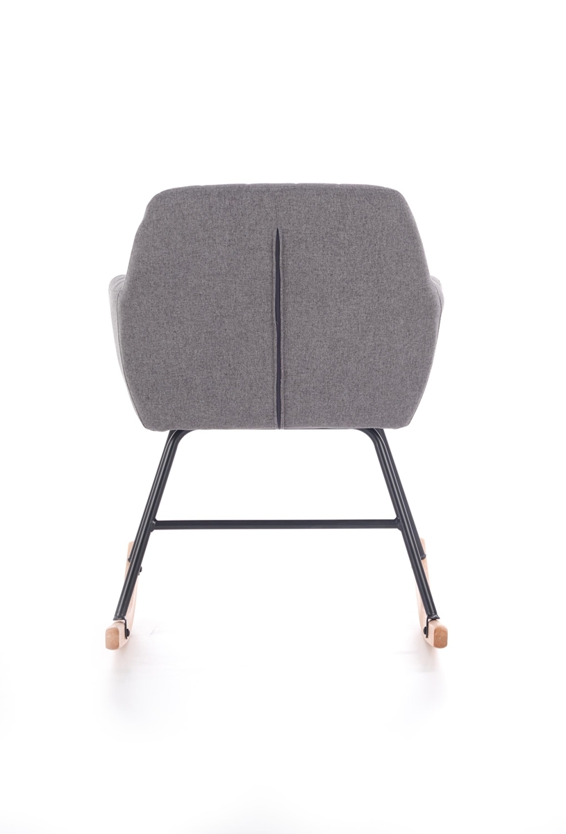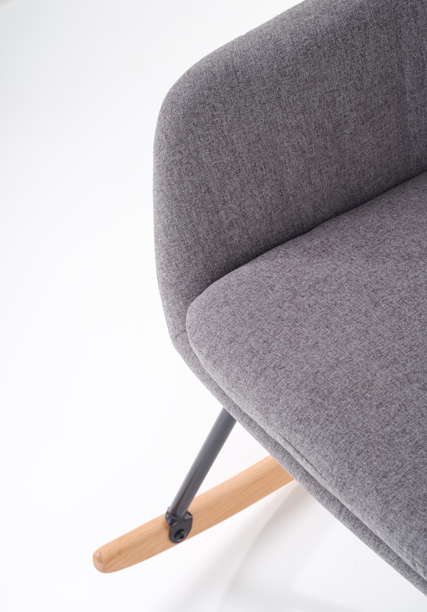 Hojdacie kreslo YORK je vhodné umiestniť do moderne zariadenej domácnosti. Sedadlo je čalúnené sivou poťahovou látkou. Konštrukcia je vyrobená v kombinácii čiernej práškovanej ocele a masívneho dreva prírodnej farby. Kreslo York vám poslúži ako kus nábytku, na ktorom si oddýchnete po dlhom a náročnom dni. Rozmery kresla sú (ŠxHxV): 75x61x79 cm. Maximálna nosnosť je 120 kg.