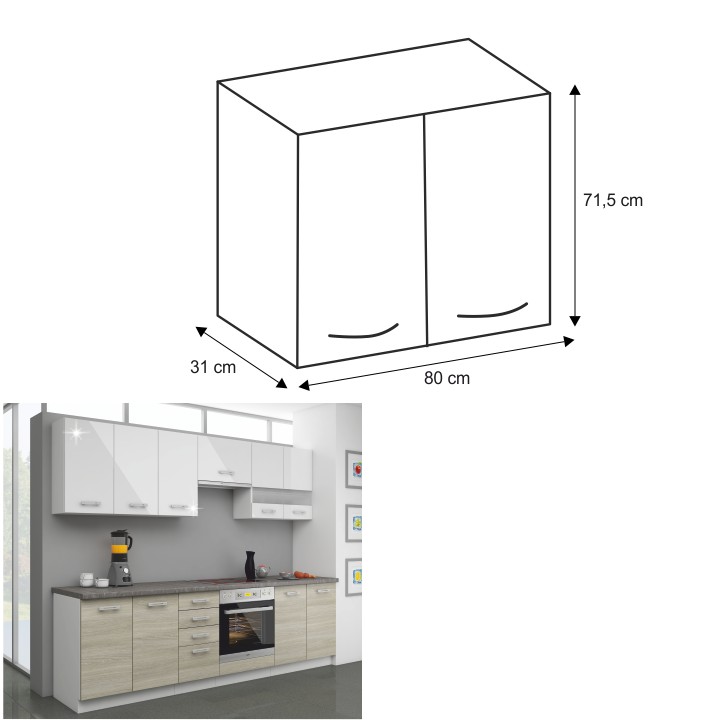 Horná kuchynská skrinka Lewis 80 G-72 - biely vysoký lesk