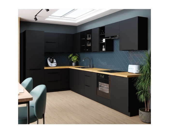 Tento sektorový prvok je určený pre vnútorné použitie a jeho rovný tvar umožňuje jednoduché začlenenie do existujúceho nábytku. Čierna farba s tmavým odtieňom pridáva eleganciu a sofistikovanosť každej kuchyni.