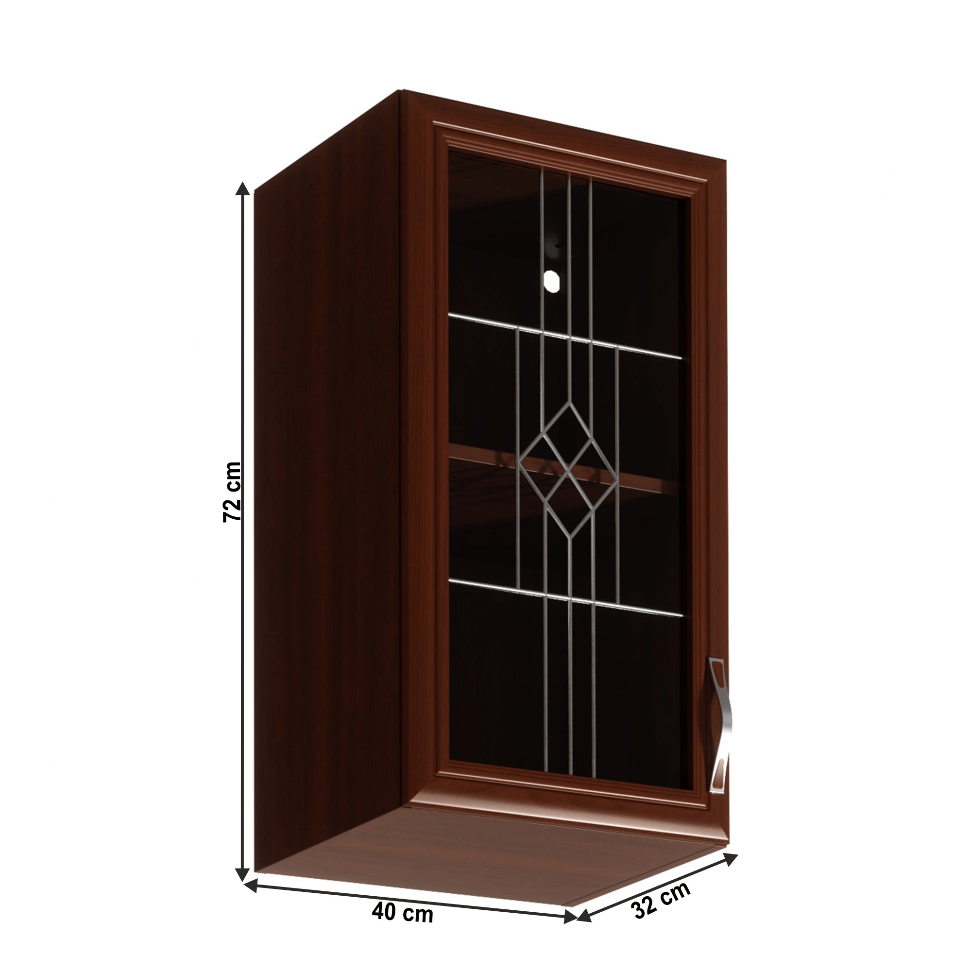 Rustikálna horná kuchynská skrinka SICILIA G40S L je jednodverová skrinka so sklom, ktorá je vnútri rozdelená policou na 2 odkladacie priestory. Sklo je priezračné, zdobené jemným ornamentom. Dvierka sa otvárajú pomocou plastovej úchytky. Ľavé prevedenie umožňuje otváranie dvierok do ľavej strany. Skrinka je na výber aj v pravom prevedení. Systém Sicilia je sektorová kuchynská zostava vyrobená v rustikálnom štýle, ktorá vyniká moderným a kvalitným spracovaním. Jedinečnú krásu dotvárajú detaily na čelných plochách a ornamenty na okrasných lištách. Kuchyňa spĺňa požiadavky aj tých najnáročnejších klientov. Trendové prevedenie vnesie teplo do vašej kuchyne. Korpus a dvierka sú vyrobené z laminovanej DTD v prevedení orech Milano. Ozdobné lišty sú z kvalitnej MDF a podčiarkujú rustikálny nádych kuchynskej linky. Dvierka a zásuvky sa otvárajú pomocou plastových úchytiek. Dolné kuchynské skrinky sa dodávajú bez pracovnej dosky, ktorú je možné doobjednať vo farebnom prevedení royal beigemarble s hrúbkou 2,8 cm. Z jednotlivých prvkov zostavy si môžete vyskladať kuchynskú linku podľa vašich potrieb a predstáv. Ak vám nevyhovuje farba, je možné si vybrať komponenty aj v svetlom prevedení biela / sosna Andersen.