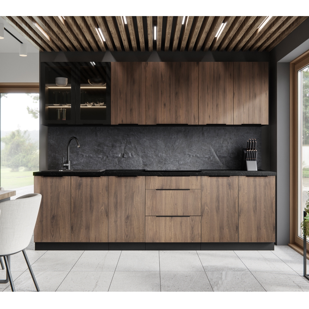 Skrinka je vyrobená z kvalitného aglomerovaného materiálu, konkrétne laminovanej DTD, čo zaručuje jej dlhú životnosť a odolnosť voči každodennému opotrebeniu. Vďaka svojmu modernému vzhľadu sa ľahko začlení do akéhokoľvek interiéru. Skrinka má rozmery 60 cm na šírku, 31 cm na hĺbku a 90 cm na výšku, čo ju robí ideálnou pre umiestnenie nad pracovnú dosku alebo iný nábytok.