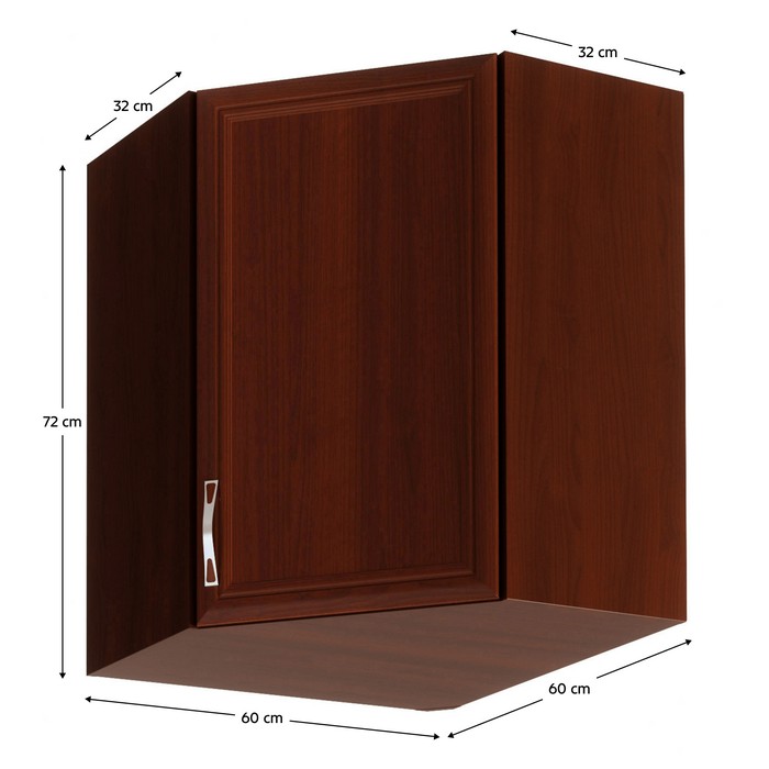 Horná rohová kuchynská skrinka SICILIA G60N je jednodverová skrinka, ktorej vnútro je policou rozdelené na 2 odkladacie priestory. Dvierka sa otvárajú pomocou plastovej úchytky. Systém Sicilia je sektorová kuchynská zostava vyrobená v rustikálnom štýle, ktorá vyniká moderným a kvalitným spracovaním. Jedinečnú krásu dotvárajú detaily na čelných plochách a ornamenty na okrasných lištách. Kuchyňa spĺňa požiadavky aj tých najnáročnejších klientov. Trendové prevedenie vnesie teplo do vašej kuchyne. Korpus a dvierka sú vyrobené z laminovanej DTD v prevedení orech Milano. Ozdobné lišty sú z kvalitnej MDF a podčiarkujú rustikálny nádych kuchynskej linky. Dvierka a zásuvky sa otvárajú pomocou plastových úchytiek. Dolné kuchynské skrinky sa dodávajú bez pracovnej dosky, ktorú je možné doobjednať vo farebnom prevedení royal beigemarble a s hrúbkou 2,8 cm. Z jednotlivých prvkov zostavy si môžete vyskladať kuchynskú linku podľa vašich potrieb a predstáv. Ak vám nevyhovuje farba, je možné si vybrať komponenty aj v svetlom prevedení biela / sosna Andersen.