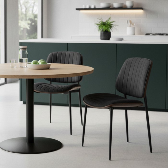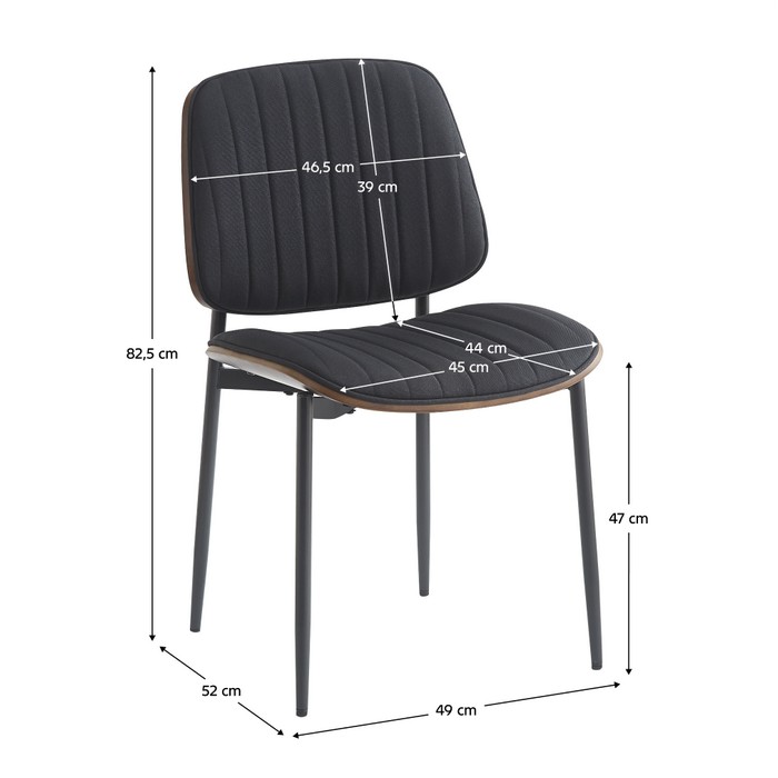 Jedálenská stolička ATINA je skvelou voľbou do priestorov, kde sa spája elegancia, komfort a kvalitné spracovanie. Upúta najmä tvarovaným operadlom z ohýbaného dreva v odtieni orech, ktoré pôsobí nadčasovo a zároveň poskytuje prirodzenú oporu chrbta. Mäkké čalúnené sedadlo potiahnuté látkou v čiernej farbe zaručuje pohodlie pri každodennom stolovaní aj dlhších posedeniach. Dekoratívne prešitie dodáva stoličke štýlový detail a zvýrazňuje jej moderný charakter. Konštrukcia je vyrobená z kombinácie látky, dreva a kovu. Pevný kovový rám v čiernej farbe zabezpečuje stabilitu a dlhú životnosť. Textília dosahuje odolnosť 80 000 oderov podľa testu Martindale, čo potvrdzuje jej vysokú trvácnosť. Rozmery stoličky sú 49x52x82,5 cm. Výška sedu je 47 cm, hĺbka 44 cm a šírka 45 cm. Chrbtová opierka má šírku 46,5 cm a výšku 39 cm. Nosnosť stoličky je 100 kg. Dodáva sa v demontovanom stave.