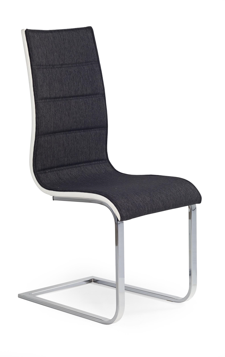 Jedálenskú stoličku K105 je vhodné umiestniť do moderne zariadenej jedálne alebo kuchyne. Pohodlie zaručuje celočalúnený sedák s ergonomickým tvarovaním. Sedadlo je čalúnené grafitovou látkou. Jeho zadná strana je potiahnutá bielou ekokožou, ktorá jej dodáva na elegancii. Konštrukcia vyrobená z chrómovanej ocele pôsobí luxusne, a to vďaka svoju tvaru a vysokému lesku. Rozmery stoličky sú (ŠxHxV): 42x58x99 cm. Výška sedenia je 47 cm a hĺbka sedenia je 42 cm. Nosnosť stoličky je 120 kg.