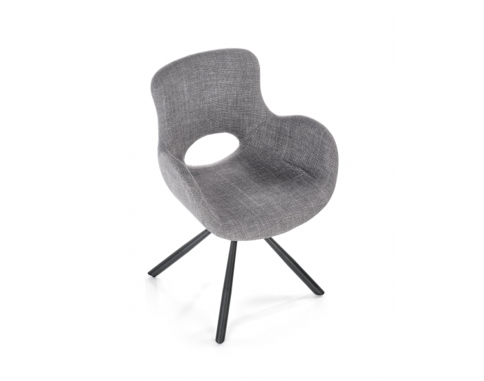 Jedálenská stolička K475 v sivej a čiernej farbe je moderným doplnkom do každého interiéru. Jej tmavá farba dodáva priestoru eleganciu a sofistikovanosť. Stolička je vyrobená z kvalitného materiálu - látky a práškovanej ocele, ktoré zaručujú jej dlhú životnosť a odolnosť.