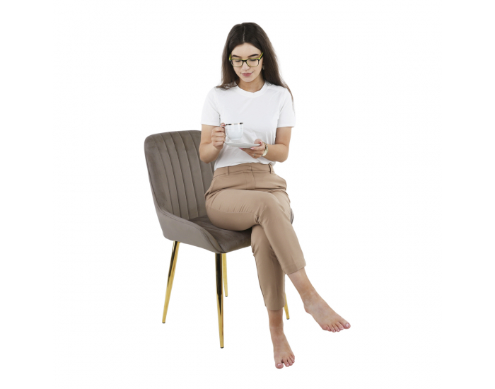 Jedálenská stolička Perlia - sivohnedá (taupe) / zlatá