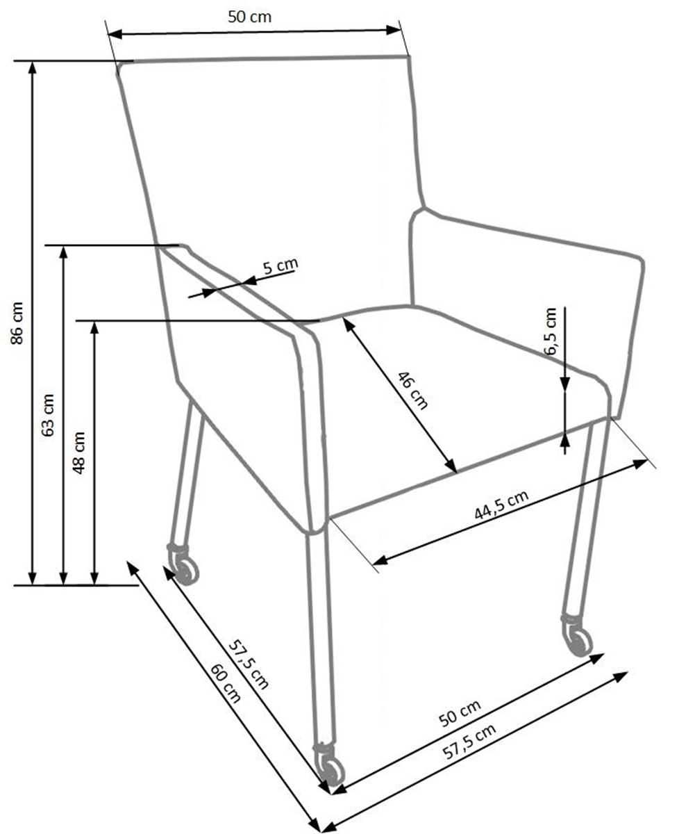 Jedálenské kreslo na kolieskach K256 je vhodné umiestniť do moderne zariadenej jedálne alebo kuchyne. Nohy sú vyrobené z chrómovanej ocele. Sedadlo je čalúnené čiernou ekokožou, ktorá sa ľahko udržiava. Rozmery kresla sú (ŠxHxV): 57,5x60x86 cm. Výška sedenia je 48 cm. Nosnosť stoličky je 120 kg.