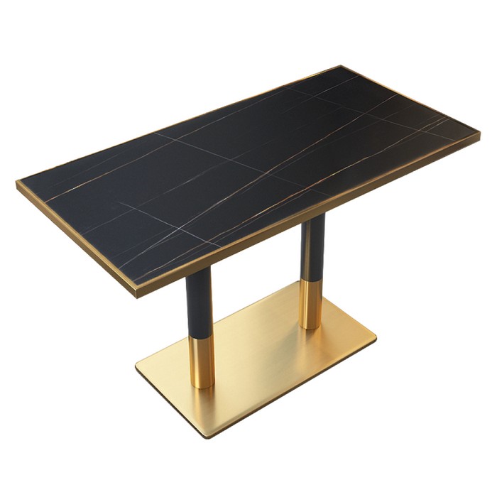 Jedálenský bistro stôl Darian 120x70 cm - čierny mramor / čierna / zlatá